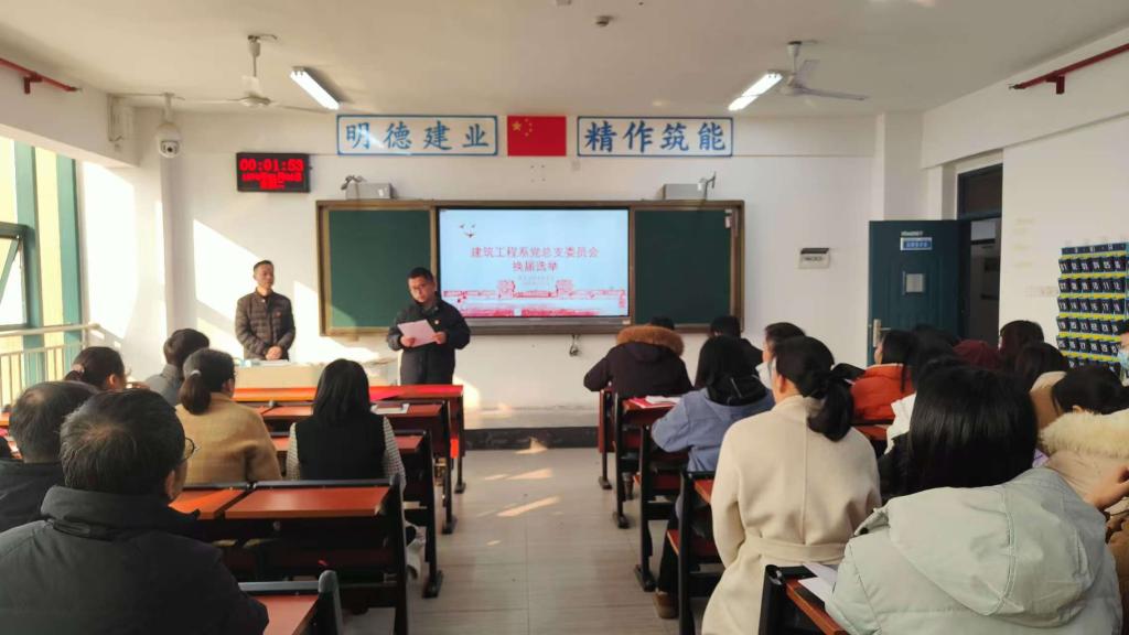 为深入贯彻落实新时代党的建设总要求,持续加强基层党组织建设,根据《中国共产党章程》《中国共产党基层组织选举工作条例》等有关规定及学院党委统一部署,建筑工程系党总支于2025年1月3日召开全体党员大会,圆满完成党总支及下设四个党支部的换届选举工作。